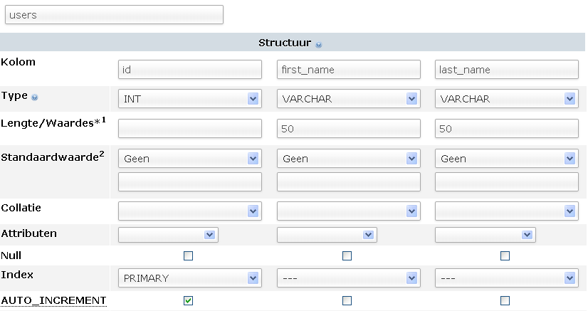 primary key. There are more special fields like indexed or unique, but they aren't really important at the moment. You might ask
