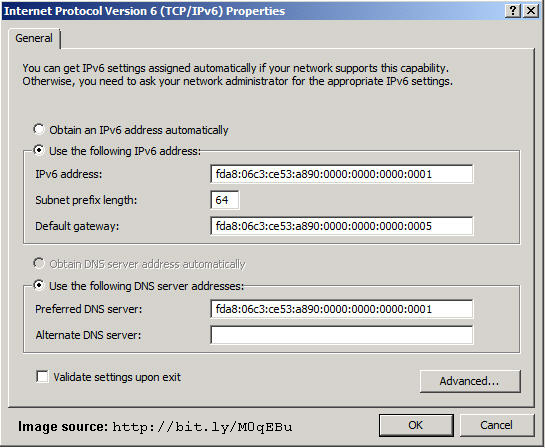 Of course, like with IPv4, you can set an address to be static instead of changing every few hours. This works in the same way as IPv4; simply set the address you want in the interface's properties (as shown